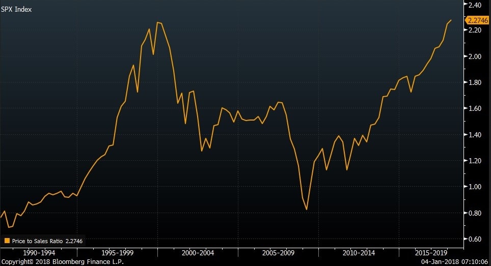 Up-to-date data for the P/S ratio of the S&P 500 can be found here